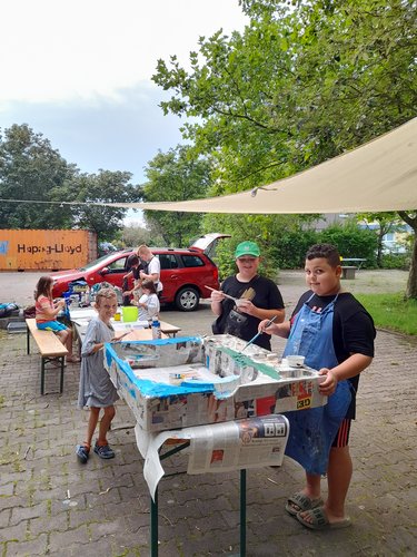 Zentrales Element des Projekts mit dem Titel "Vom Wasser des Lebens - für einen friedlichen Fluss der Verständigung" war der gemeinsame Prozess mit den Kindern und Jugendlichen. Diese bastelten eigenständig Hosenträgerboote als Umzugsmobiles und dazu passende Masken, um diese in einer Art "Samba-Umzug" oder besser "Karneval der Kulturen" zu präsentieren.